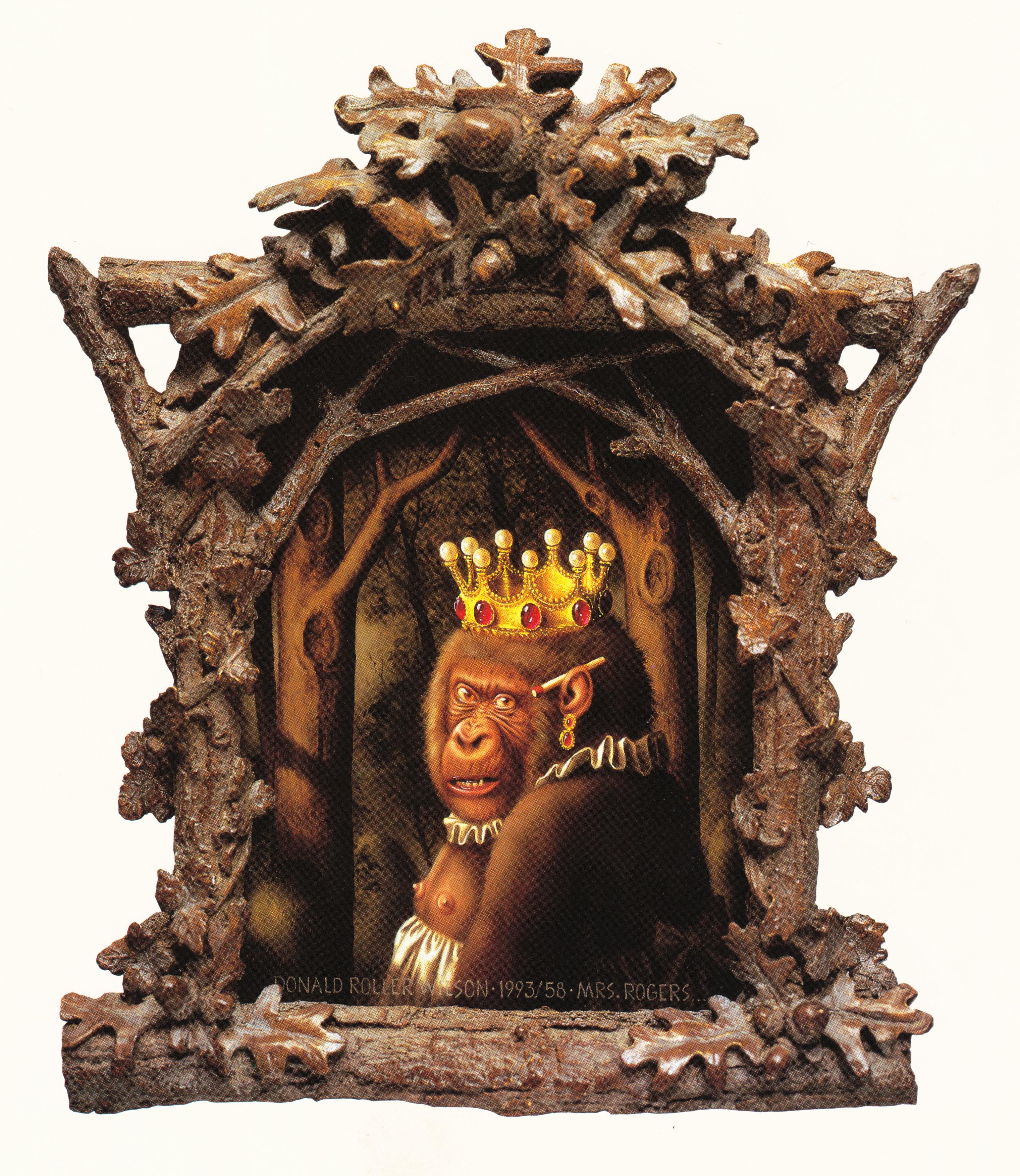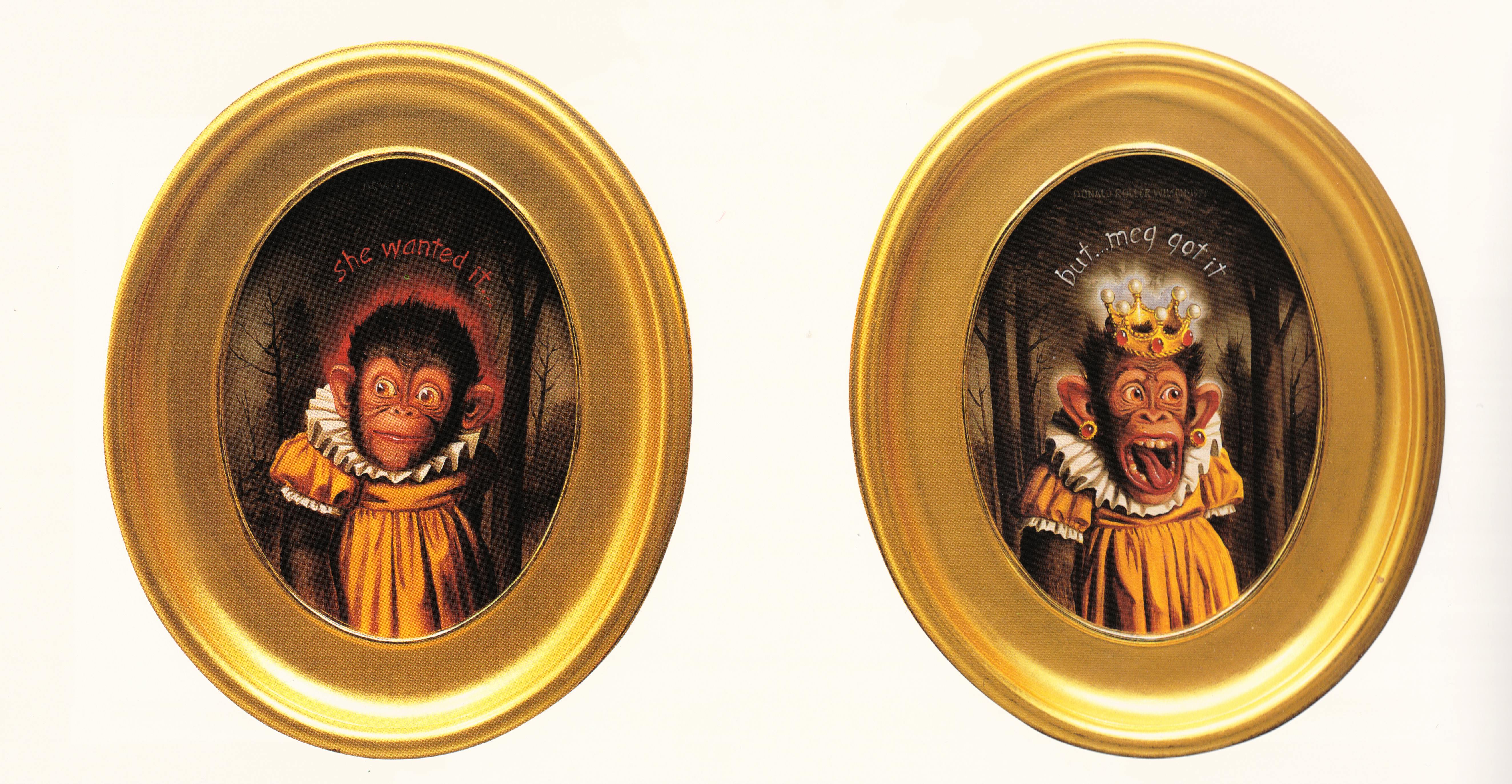 Donald Roller Wilson Cookie wanted it...(Miss Texas - the crown)... but...Meg got it...(Miss Texas - the Crown) .., 1992, oil on two panels, 11 x 9 inches each_